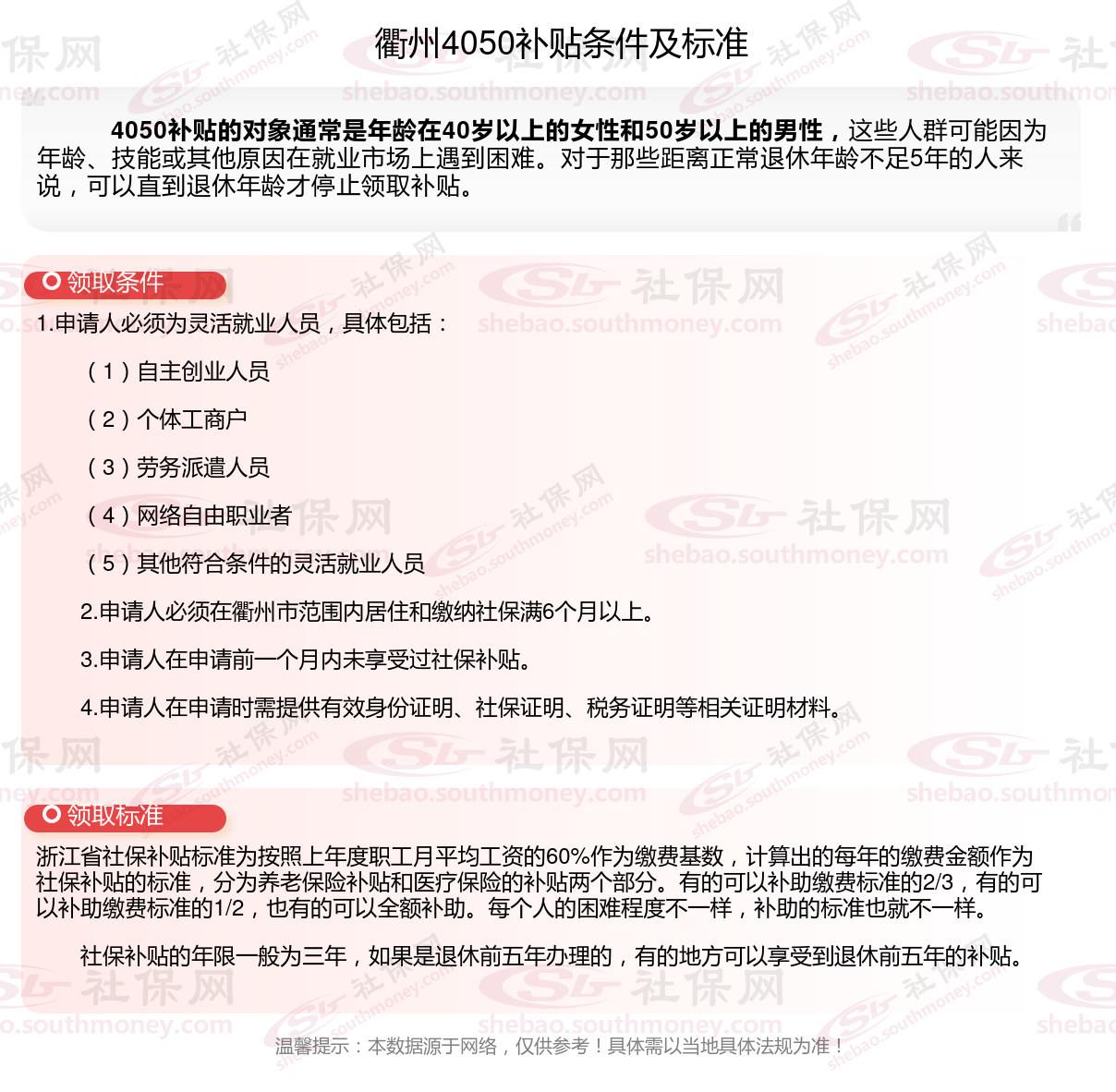 二、衢州4050社保补贴标准及条件2023-2024年,最新如下