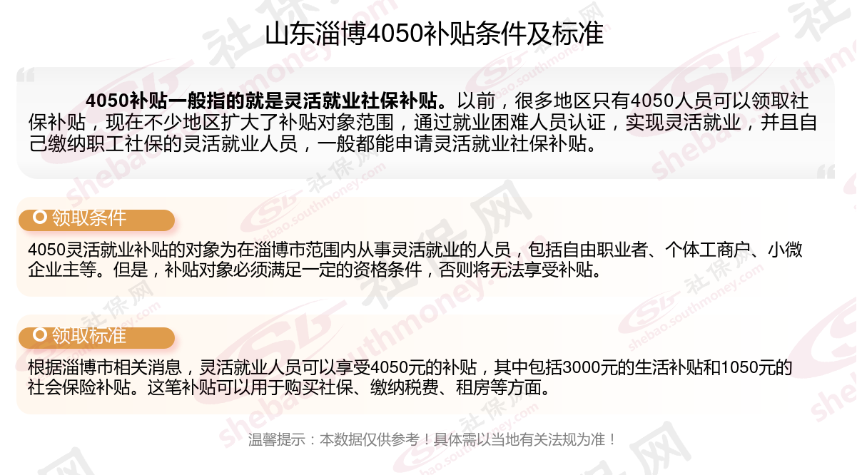 一、山东淄博4050社保补贴标准及条件2023-2024年