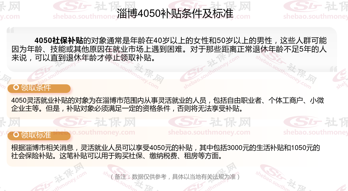 2024淄博4050补贴主要针对的是年龄在40岁以上的女性和50岁以上的男性,这些人群通常因为年龄较大而面临就业困难。