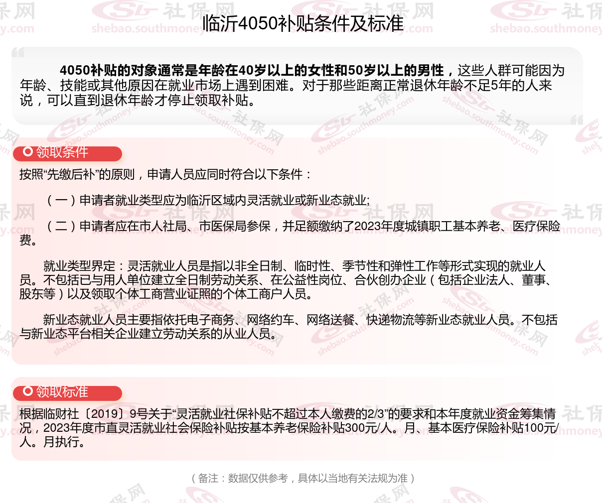 2024临沂灵活就业4050社保补贴是一项面向特定年龄段的就业困难人群的社会保险补贴。
