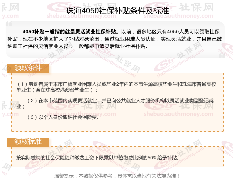 2024珠海灵活就业4050社保补贴是一项面向特定年龄段的就业困难人群的社会保险补贴。