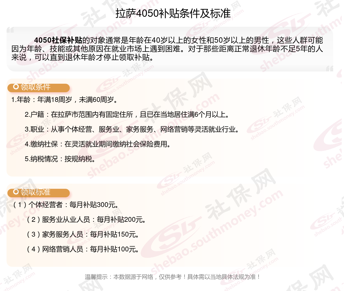 一、2023-2024年拉萨灵活就业4050社保补贴标准和条件是什么