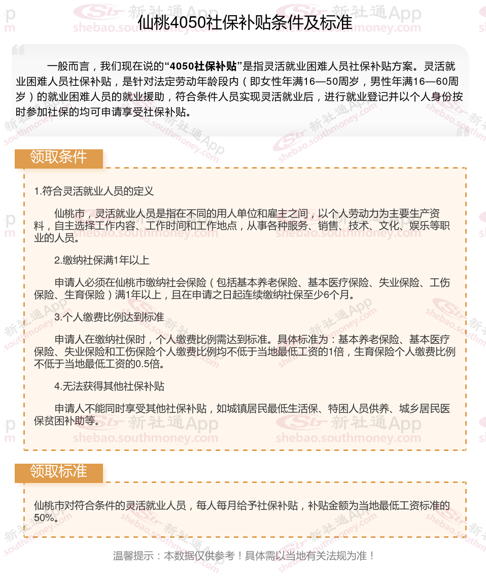 一、仙桃4050社保补贴标准及条件2023-2024年
