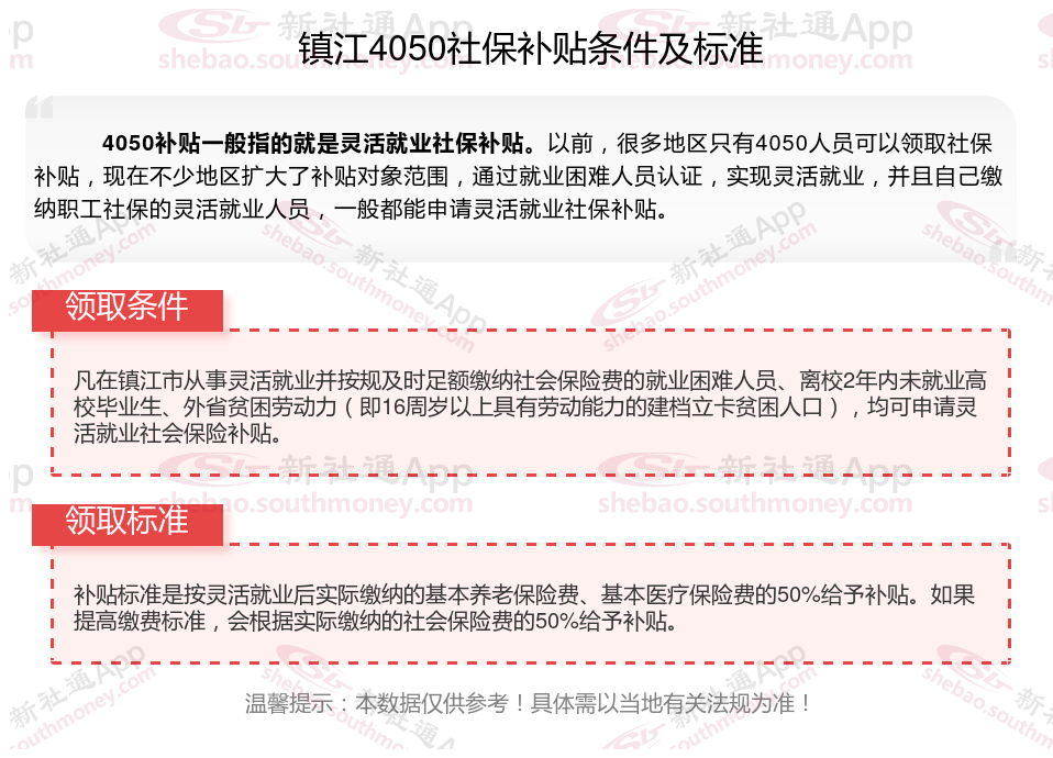多数地区只有4050人员可以领取社保补贴,现在扩大了补贴对象及范围,通过就业困难人员认证,实现灵活就业,并且自己缴纳职工社保的灵活就业人员,一般都能申请灵活就业社保补贴。那么镇江4050灵活就业社保补贴标准是多少钱?镇江4050社保补贴条件是什么?接下来随新社通APP小编了解一下最新资讯。