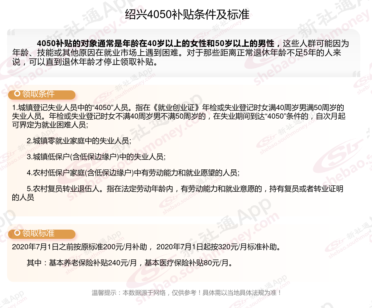二、绍兴4050社保补贴标准及条件2023-2024年