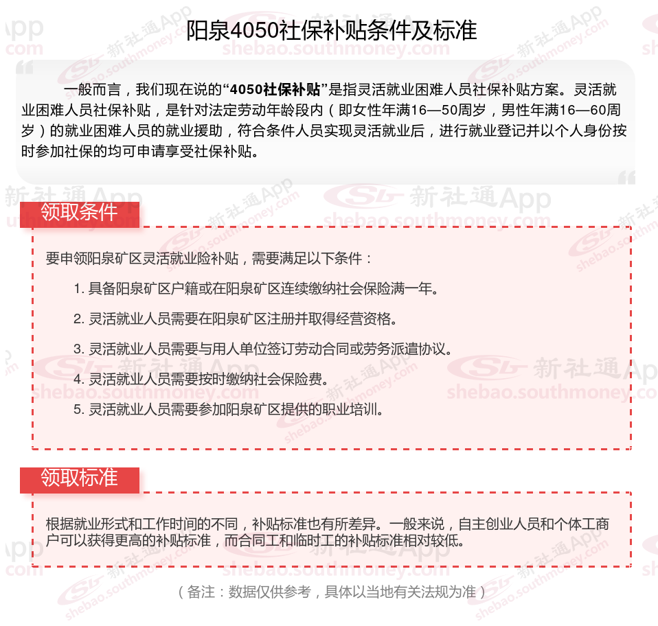 一、阳泉4050社保补贴标准及条件2023-2024年