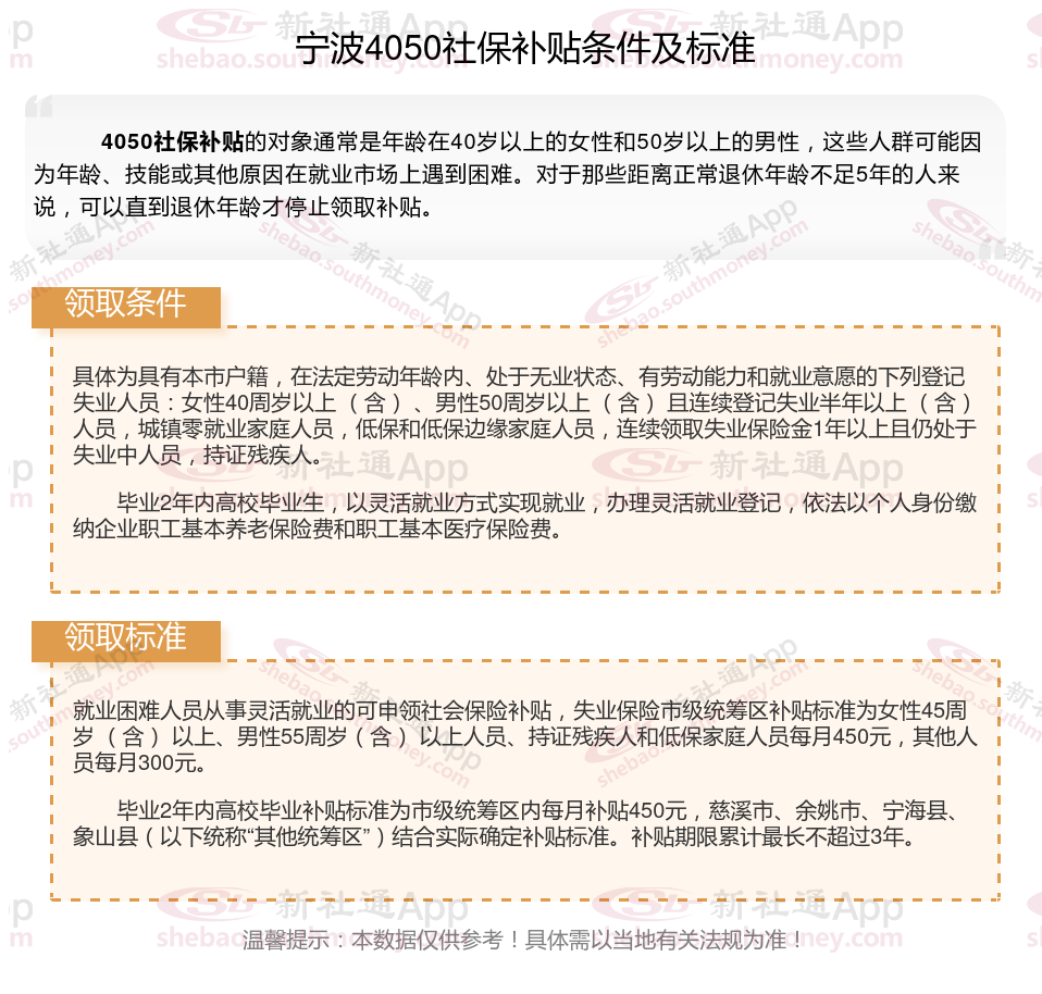 二、宁波4050社保补贴标准及条件2023-2024年