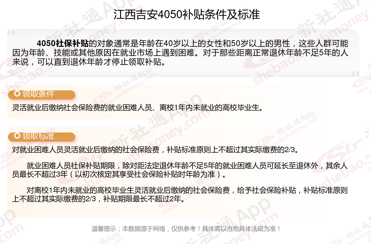 二、江西吉安4050社保补贴标准及条件2023-2024年