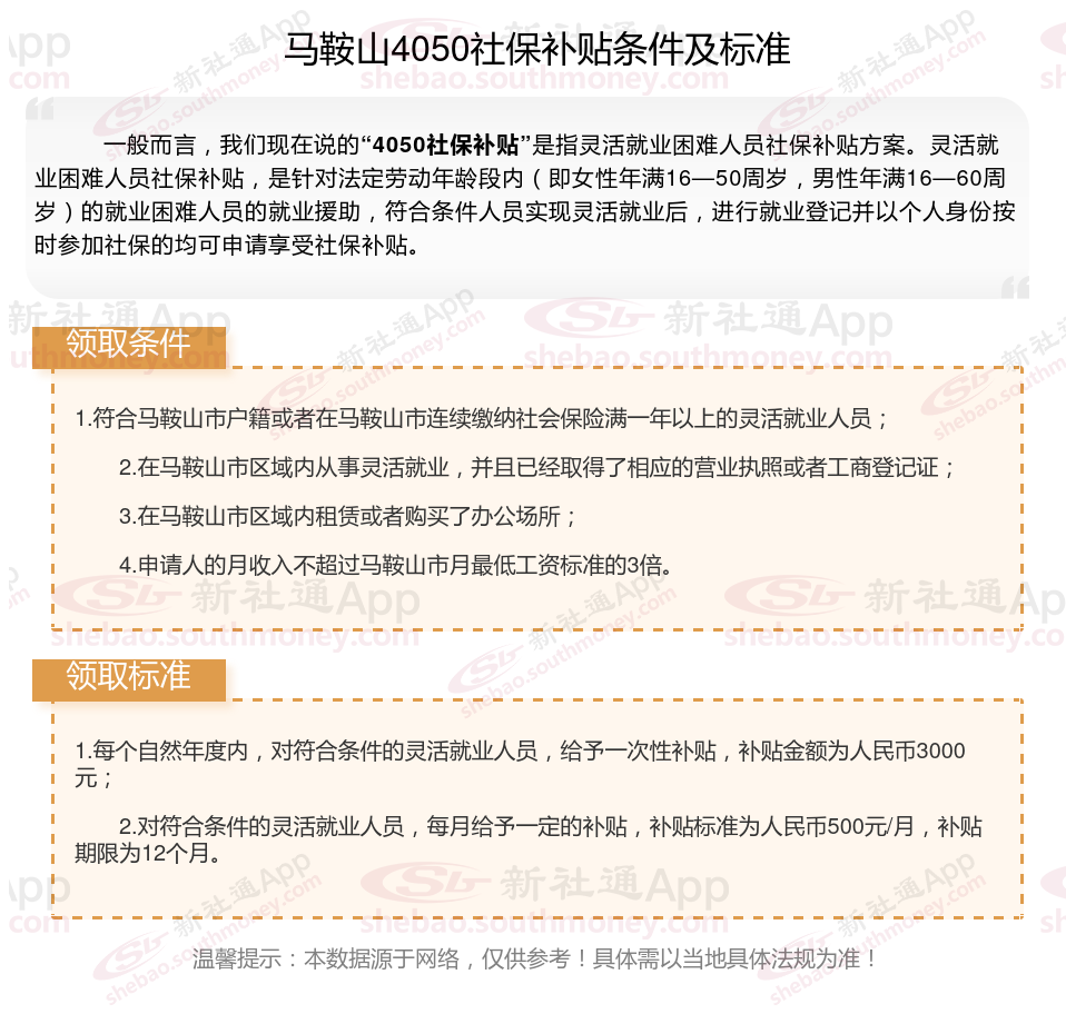 二、马鞍山4050社保补贴标准及条件2023-2024年