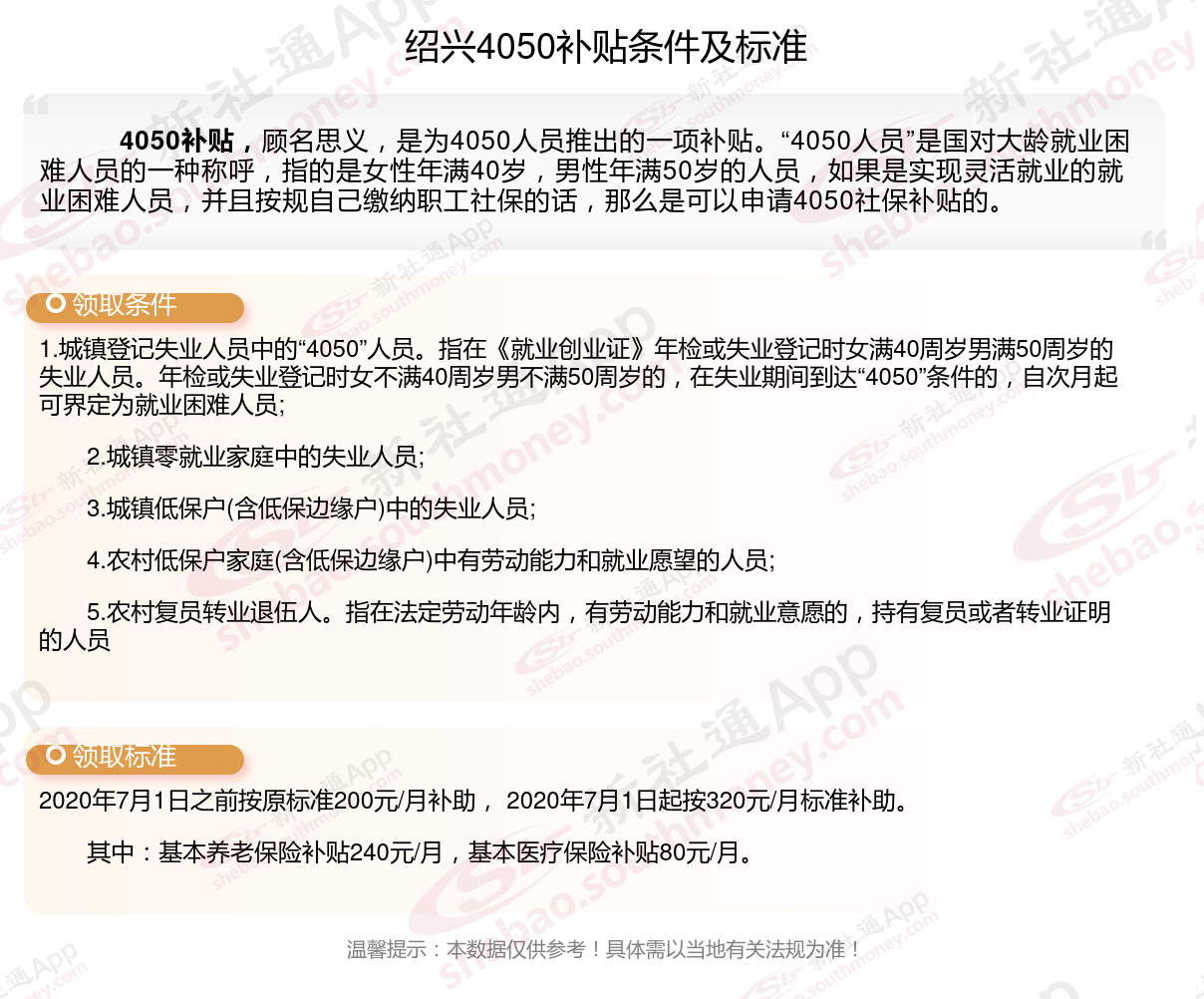 2024绍兴4050补贴主要针对的是年龄在40岁以上的女性和50岁以上的男性,这些人群通常因为年龄较大而面临就业困难。