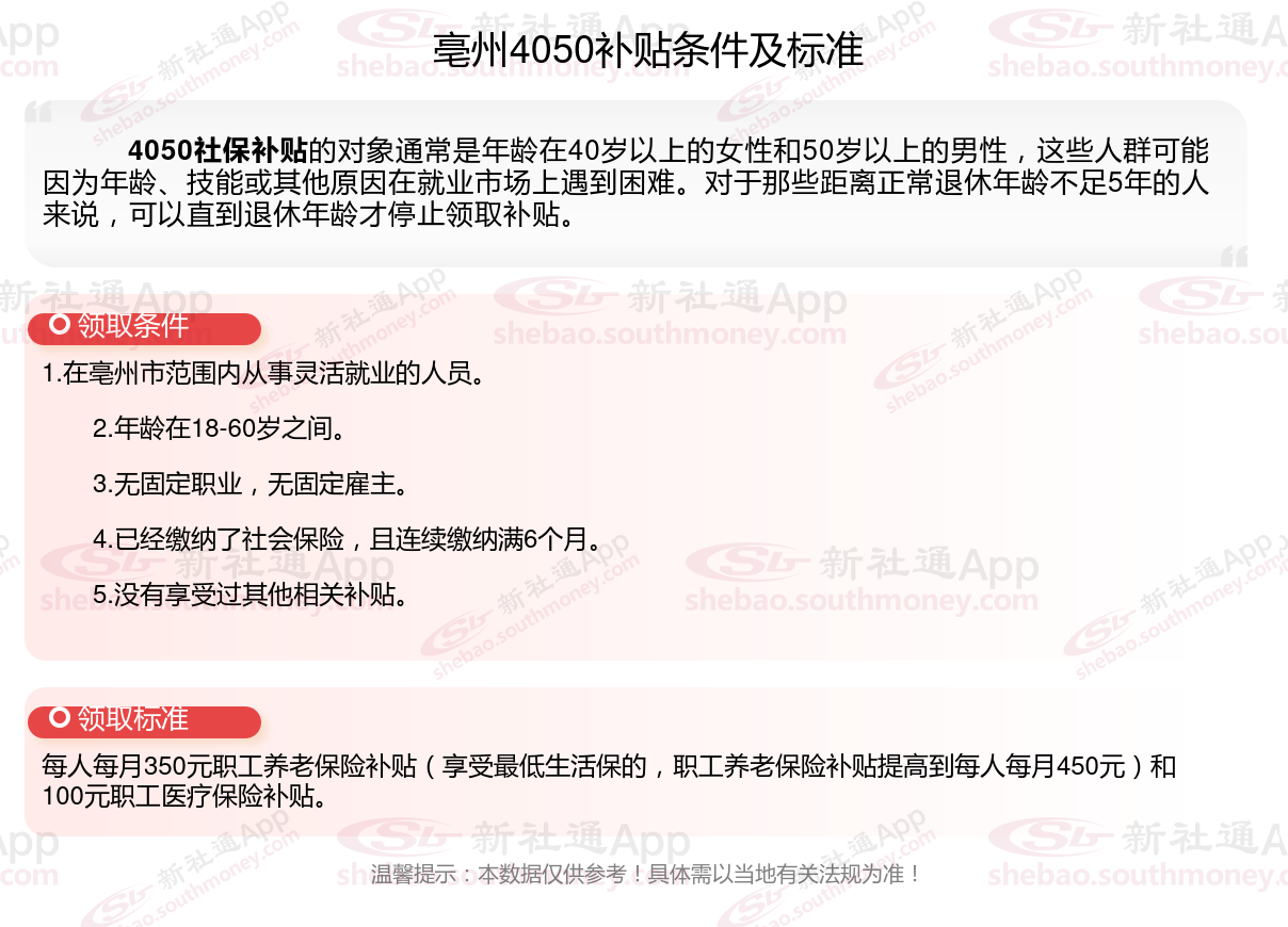 2024亳州灵活就业4050社保补贴是一项面向特定年龄段的就业困难人群的社会保险补贴。