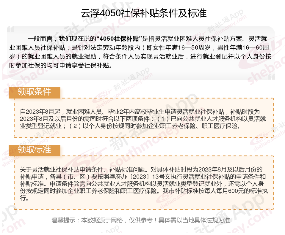 二、云浮4050社保补贴标准及条件2023-2024年