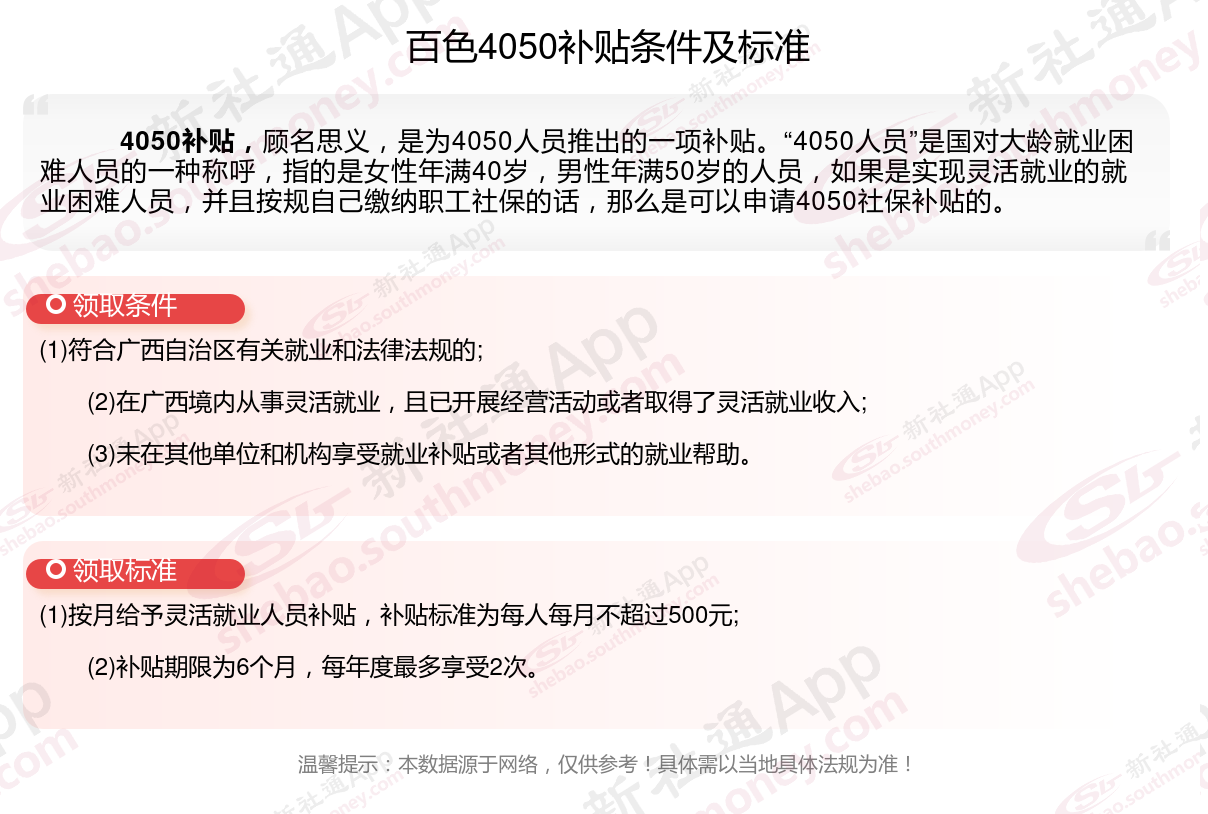 二、百色4050社保补贴标准及条件2023-2024年,最新如下
