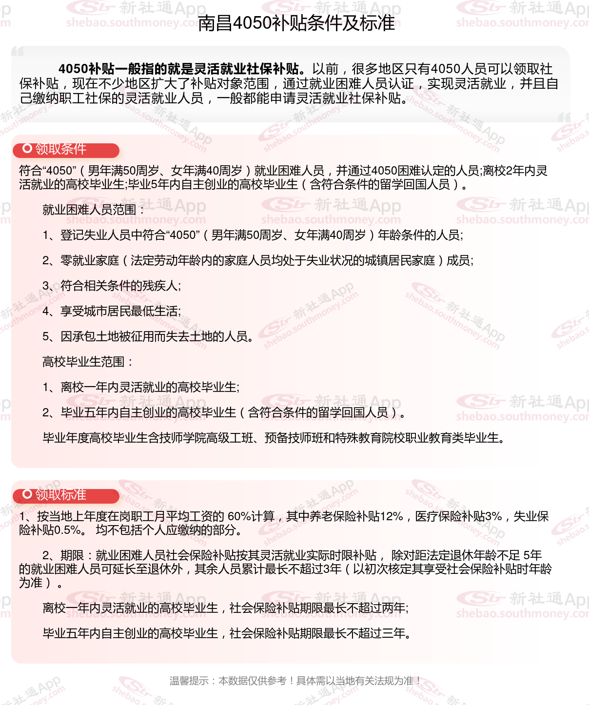 2024南昌4050补贴主要针对的是年龄在40岁以上的女性和50岁以上的男性,这些人群通常因为年龄较大而面临就业困难。