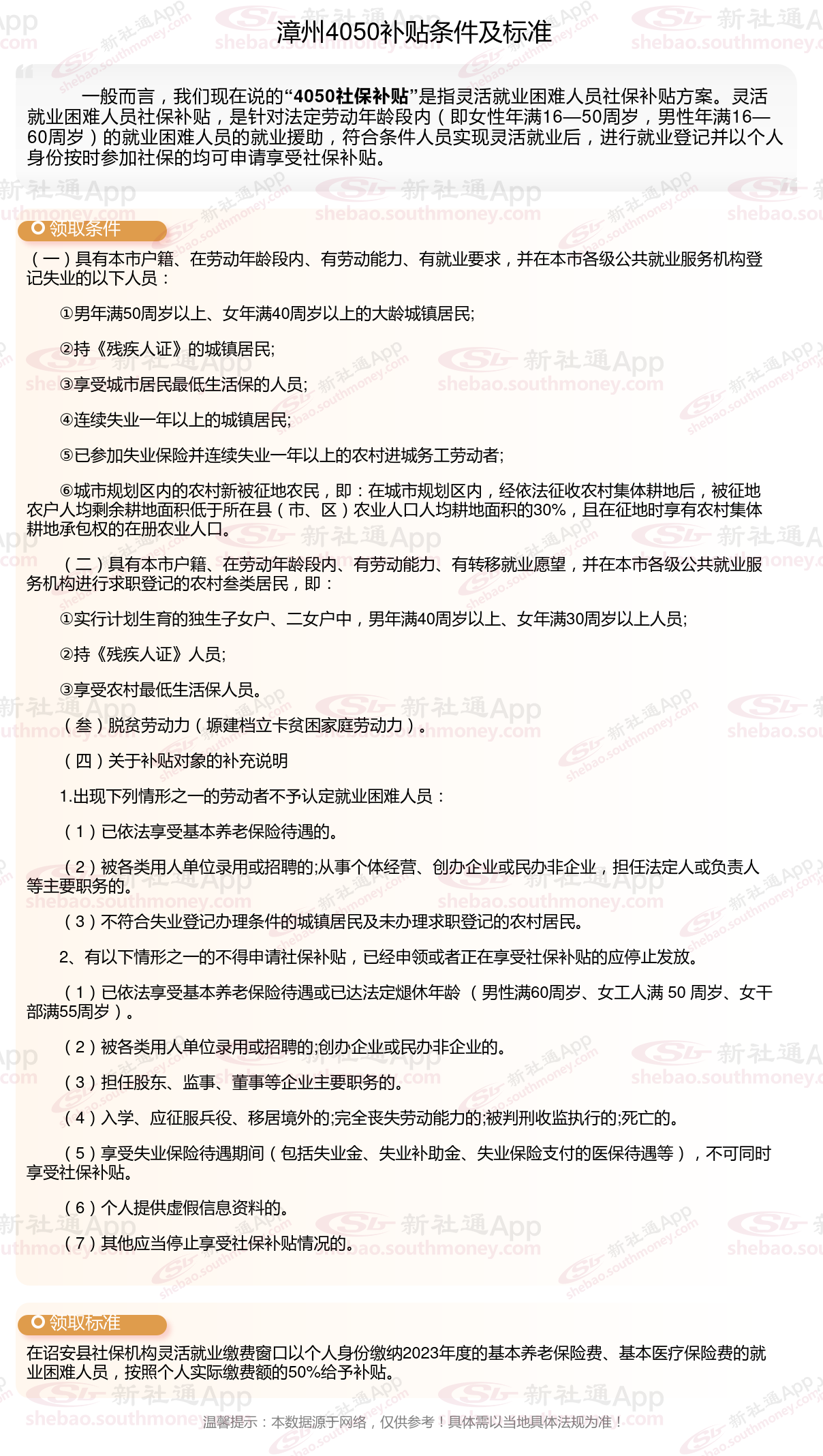2024漳州4050补贴主要针对的是年龄在40岁以上的女性和50岁以上的男性,这些人群通常因为年龄较大而面临就业困难。