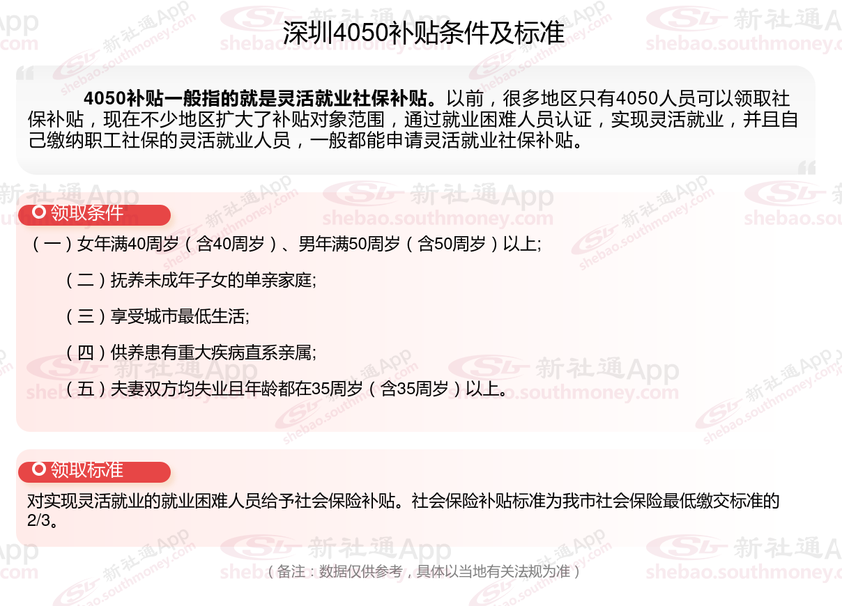 二、深圳灵活就业4050社保补贴标准及条件是什么