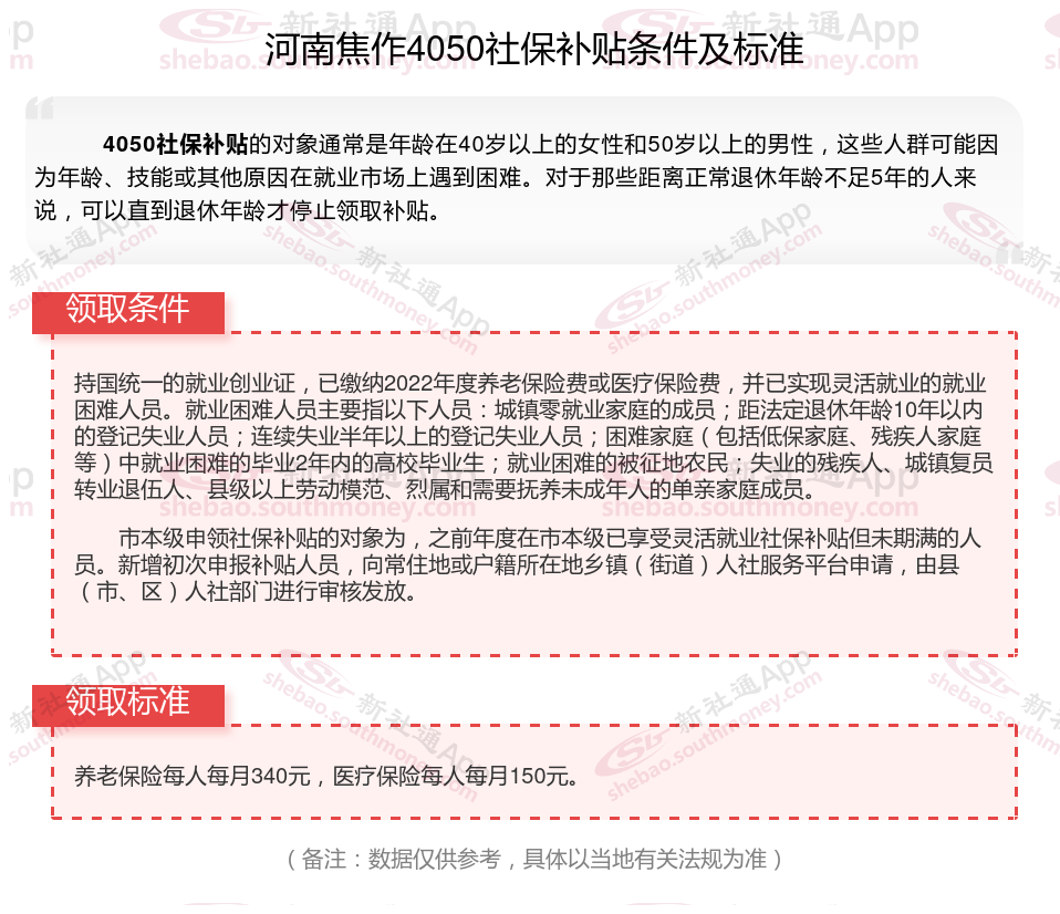 2024河南焦作灵活就业4050社保补贴是一项面向特定年龄段的就业困难人群的社会保险补贴。