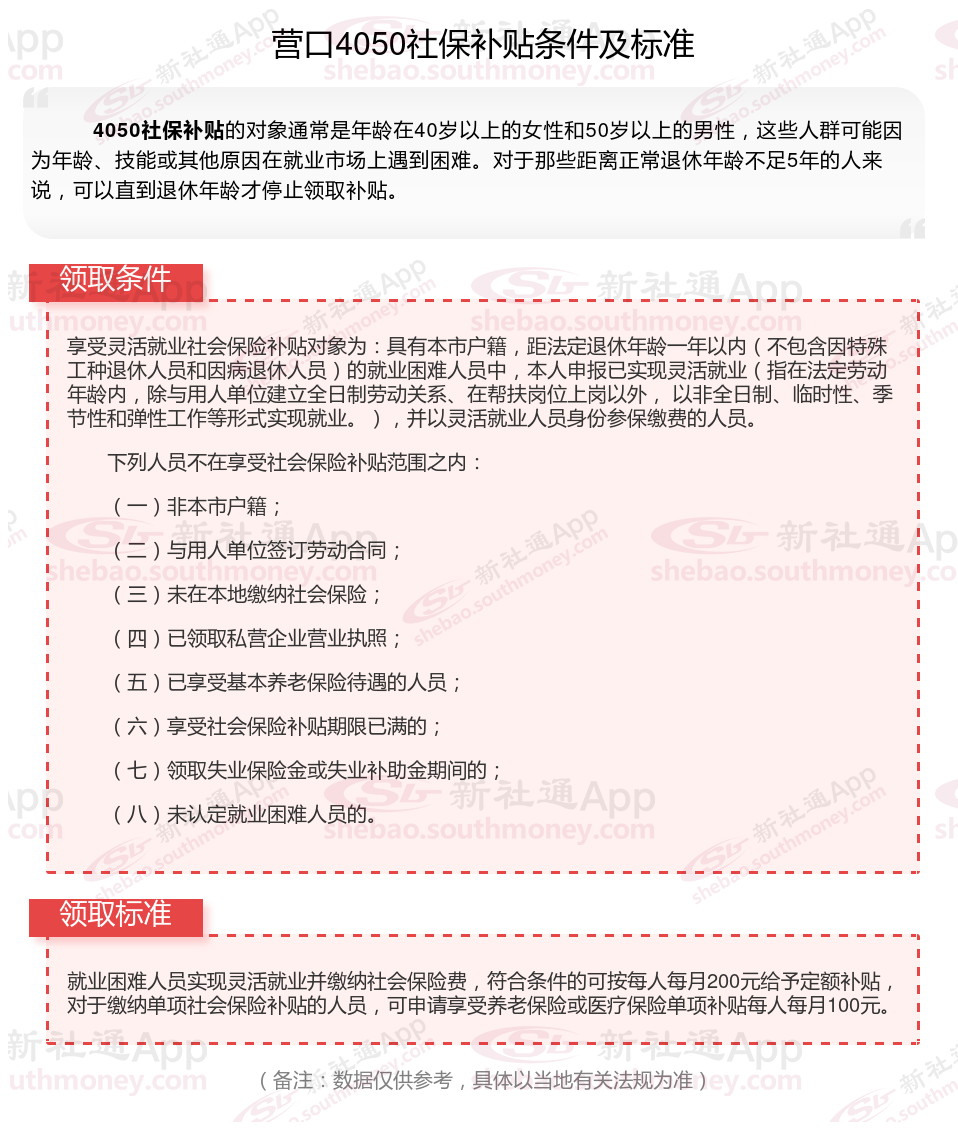 2024营口灵活就业4050社保补贴是一项面向特定年龄段的就业困难人群的社会保险补贴。