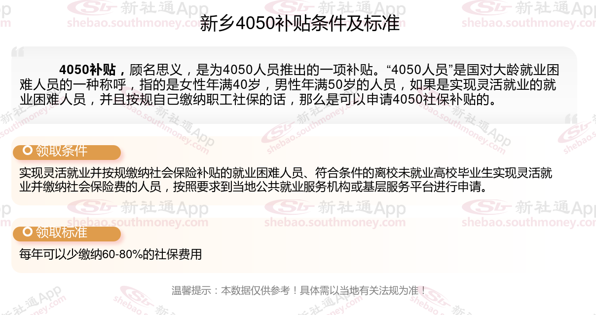 一、新乡4050社保补贴标准及条件2023-2024年
