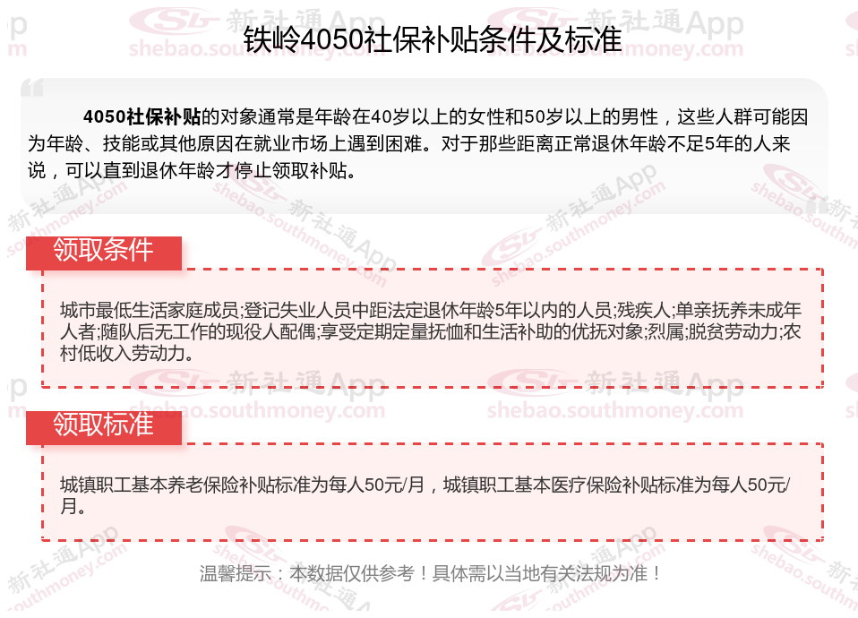 二、铁岭4050社保补贴标准及条件2023-2024年