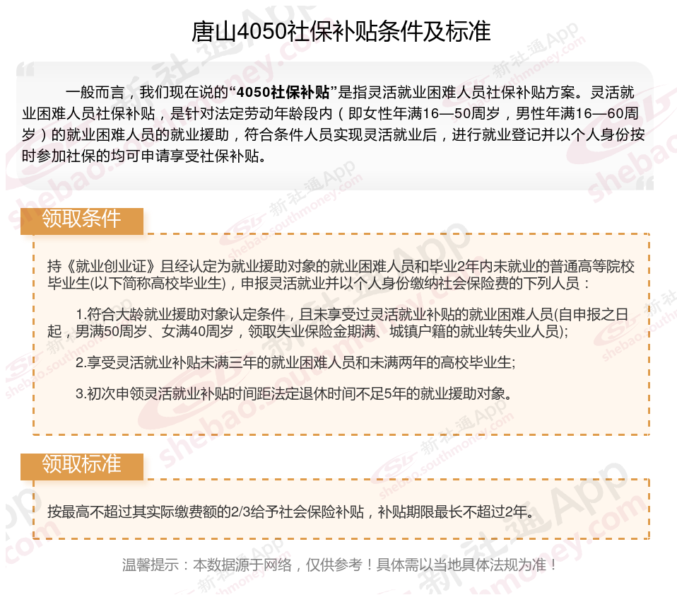 2024唐山灵活就业4050社保补贴是一项面向特定年龄段的就业困难人群的社会保险补贴。