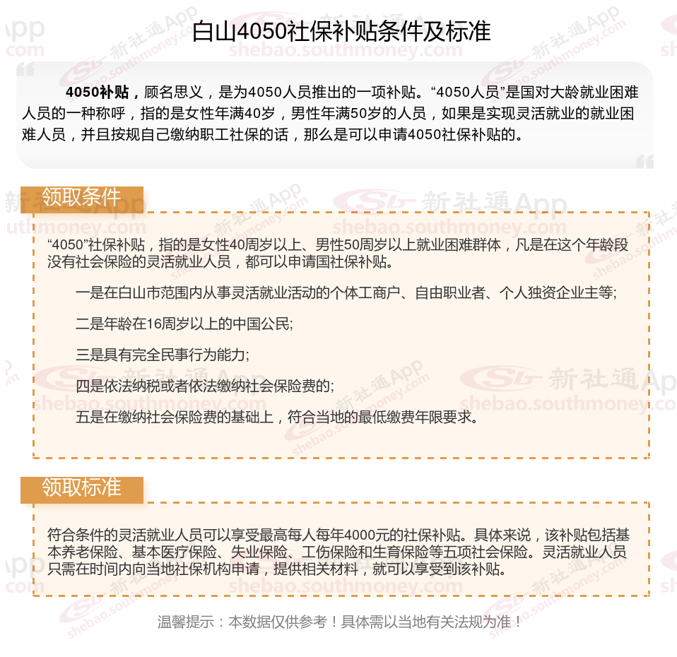 2024白山灵活就业4050社保补贴是一项面向特定年龄段的就业困难人群的社会保险补贴。