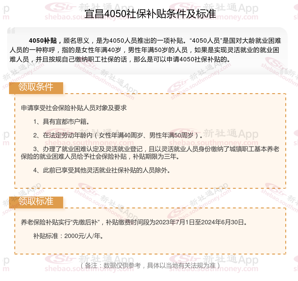 二、宜昌4050社保补贴标准及条件2023-2024年