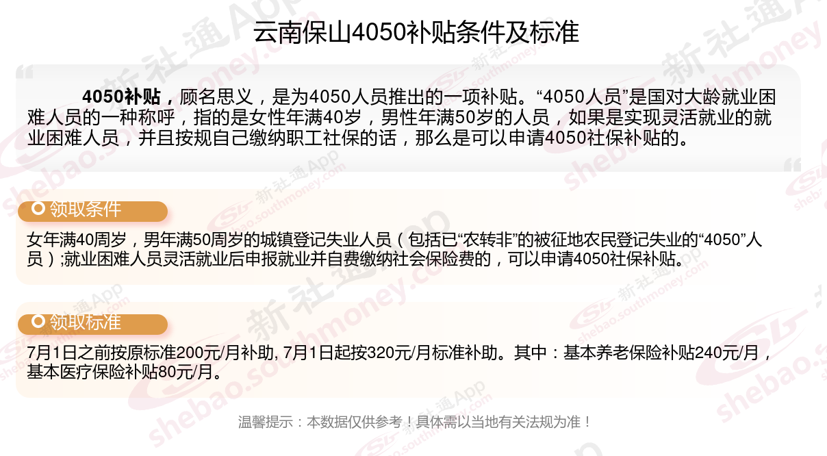二、云南保山灵活就业4050社保补贴标准及条件是什么