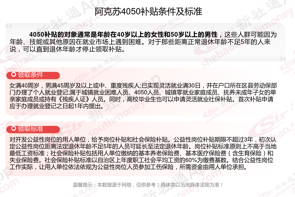 一、阿克苏4050社保补贴标准及条件2023-2024年