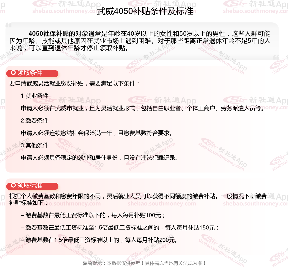 二、武威4050社保补贴标准及条件2023-2024年,最新如下