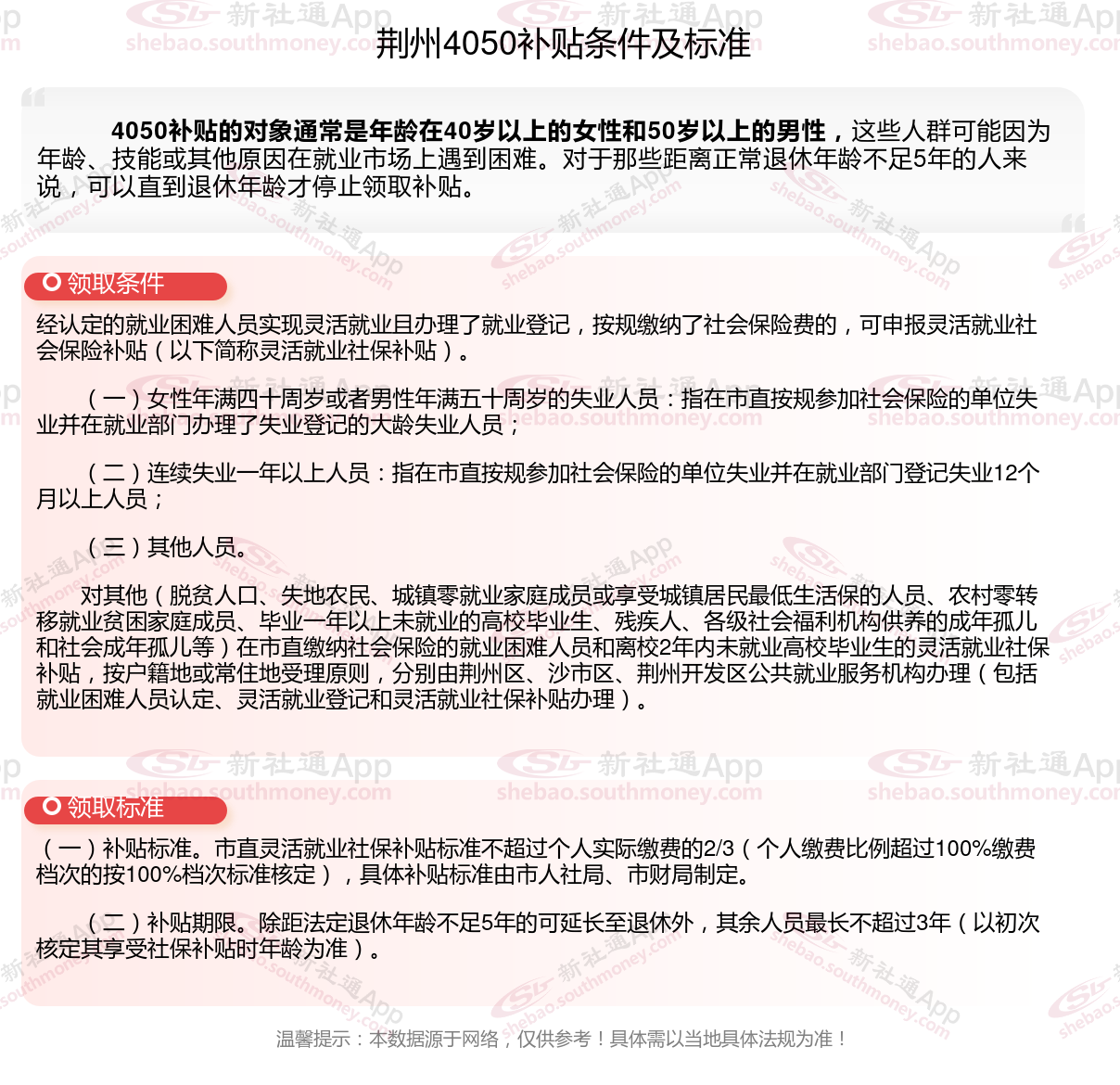2024荆州4050补贴主要针对的是年龄在40岁以上的女性和50岁以上的男性,这些人群通常因为年龄较大而面临就业困难。
