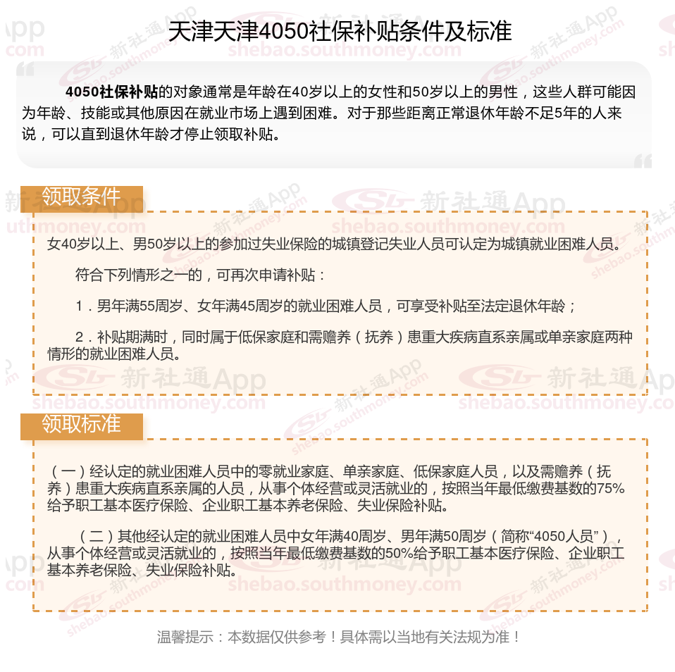 二、天津天津4050社保补贴标准及条件2023-2024年