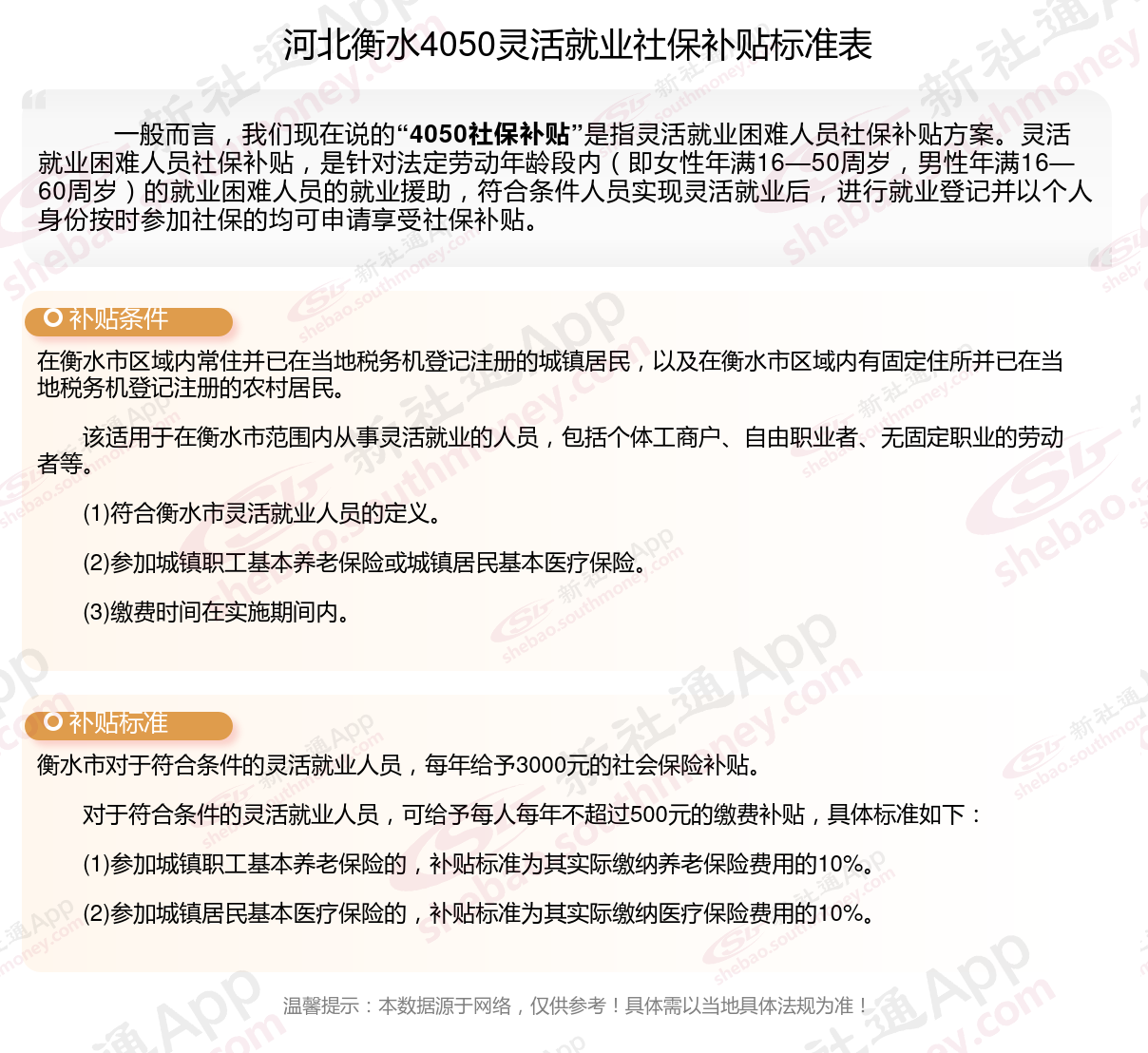 一、2023-2024年河北衡水4050社保补贴标准,最新领取条件来了