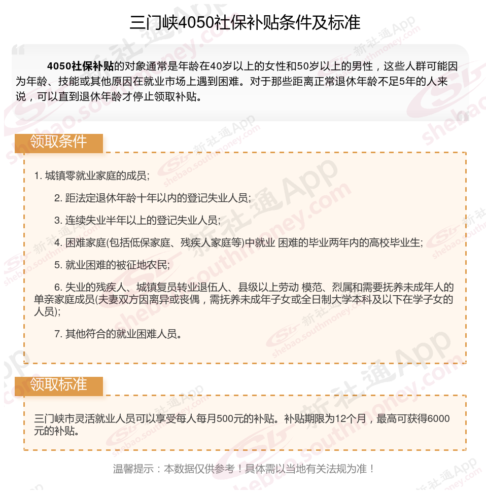 2024三门峡4050补贴主要针对的是年龄在40岁以上的女性和50岁以上的男性,这些人群通常因为年龄较大而面临就业困难。