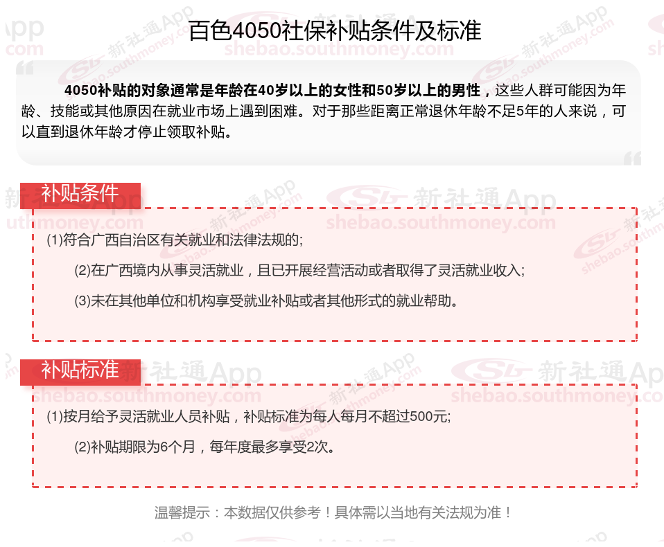 一、2023-2024年百色4050社保补贴标准,最新领取条件来了