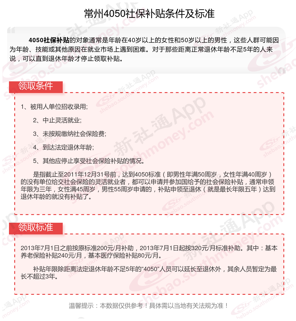 2024常州4050补贴主要针对的是年龄在40岁以上的女性和50岁以上的男性,这些人群通常因为年龄较大而面临就业困难。