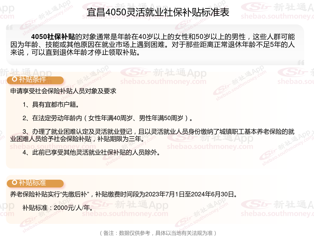 一、宜昌4050社保补贴标准及条件2023-2024年