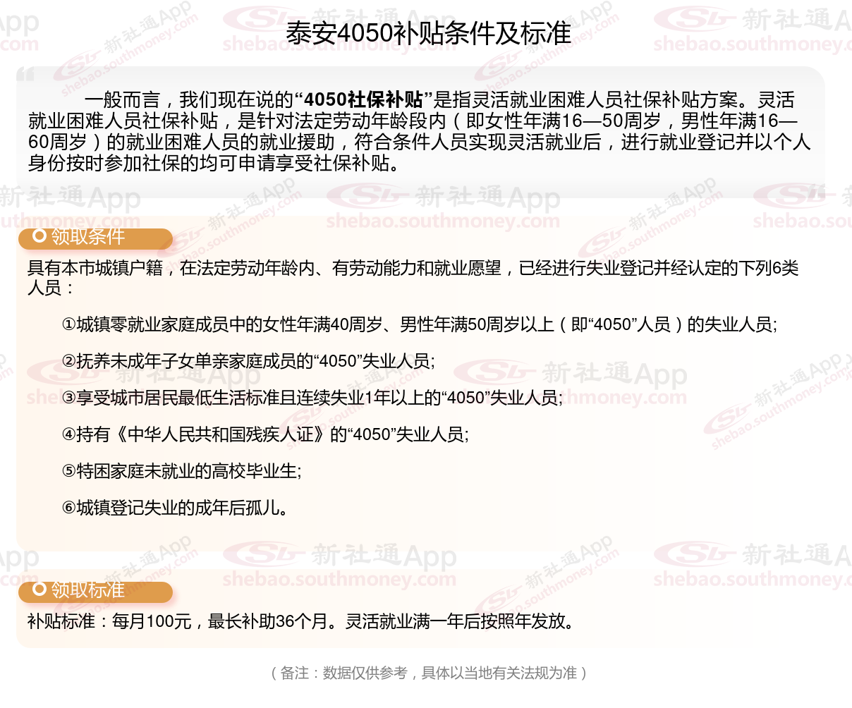 一、泰安4050社保补贴标准及条件2023-2024年