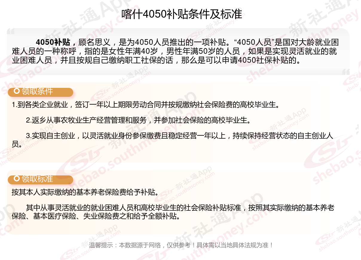 2024喀什灵活就业4050社保补贴是一项面向特定年龄段的就业困难人群的社会保险补贴。