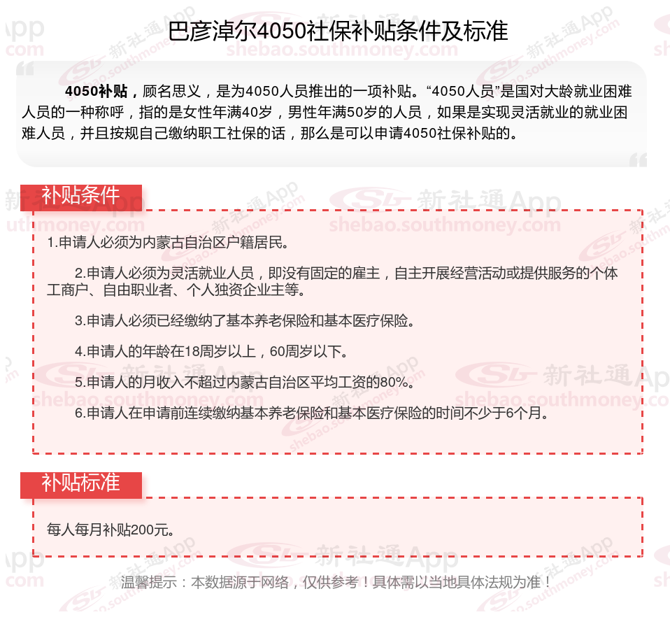二、巴彦淖尔4050社保补贴标准及条件2023-2024年,最新如下