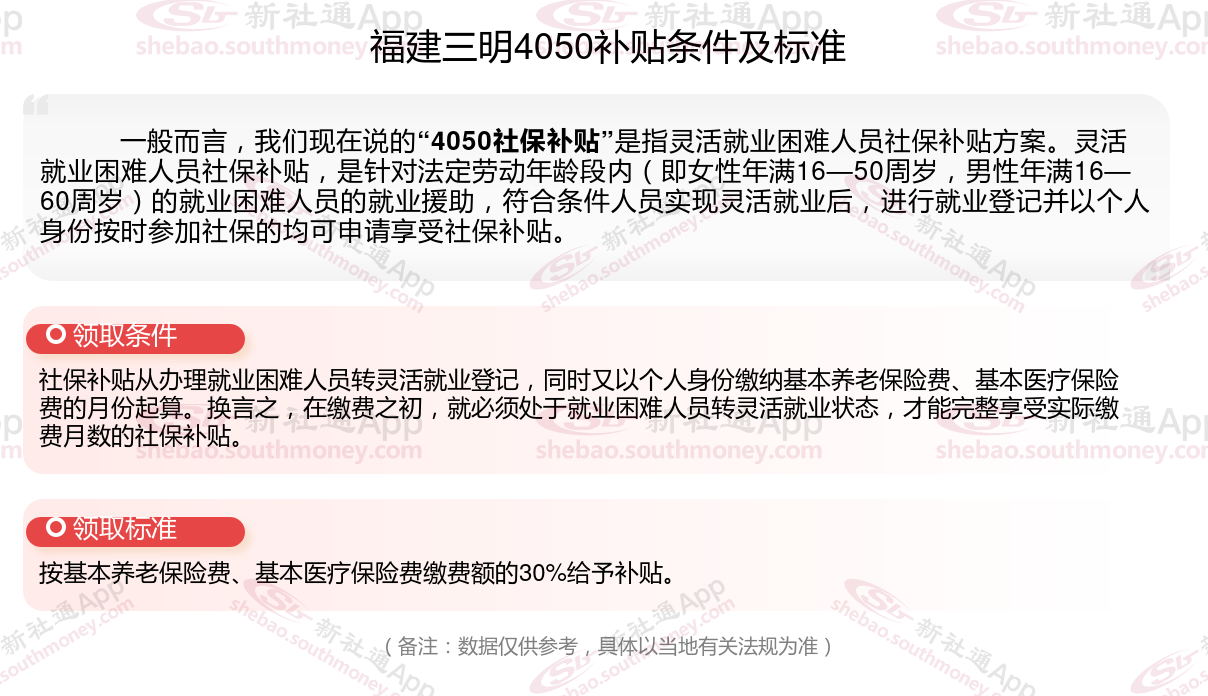 二、福建三明4050社保补贴标准及条件2023-2024年