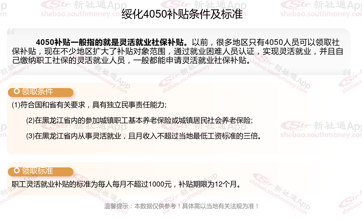 二、绥化4050社保补贴标准及条件2023-2024年,最新如下