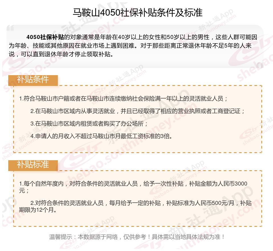 2024马鞍山灵活就业4050社保补贴是一项面向特定年龄段的就业困难人群的社会保险补贴。