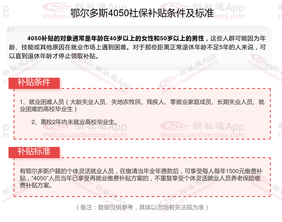 二、鄂尔多斯4050社保补贴标准及条件2023-2024年