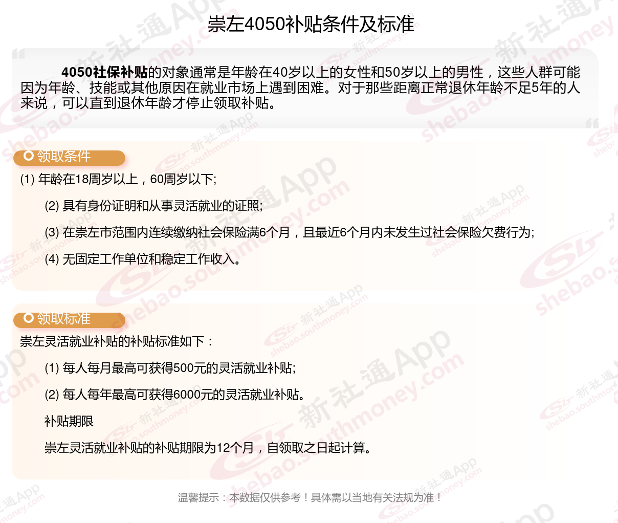 2024崇左4050补贴主要针对的是年龄在40岁以上的女性和50岁以上的男性,这些人群通常因为年龄较大而面临就业困难。