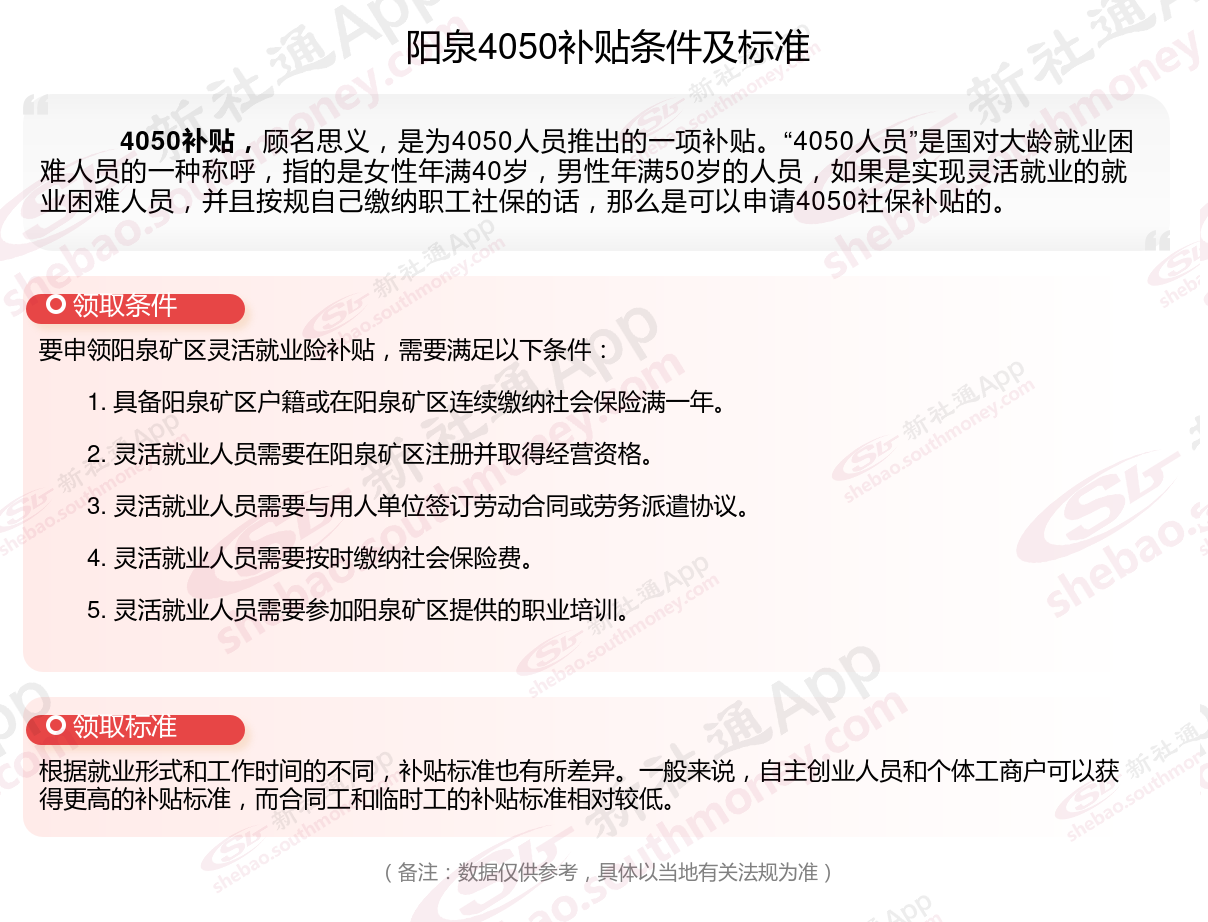 2024阳泉灵活就业4050社保补贴是一项面向特定年龄段的就业困难人群的社会保险补贴。