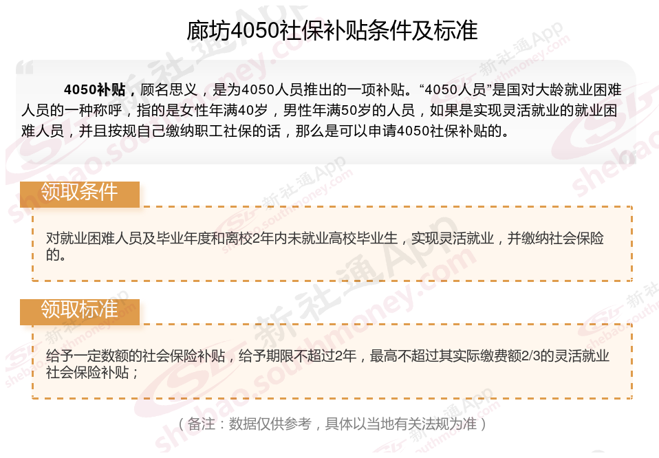 二、廊坊4050社保补贴标准及条件2023-2024年