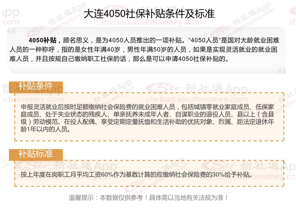 一、2023-2024年大连4050社保补贴标准及条件,最新如下