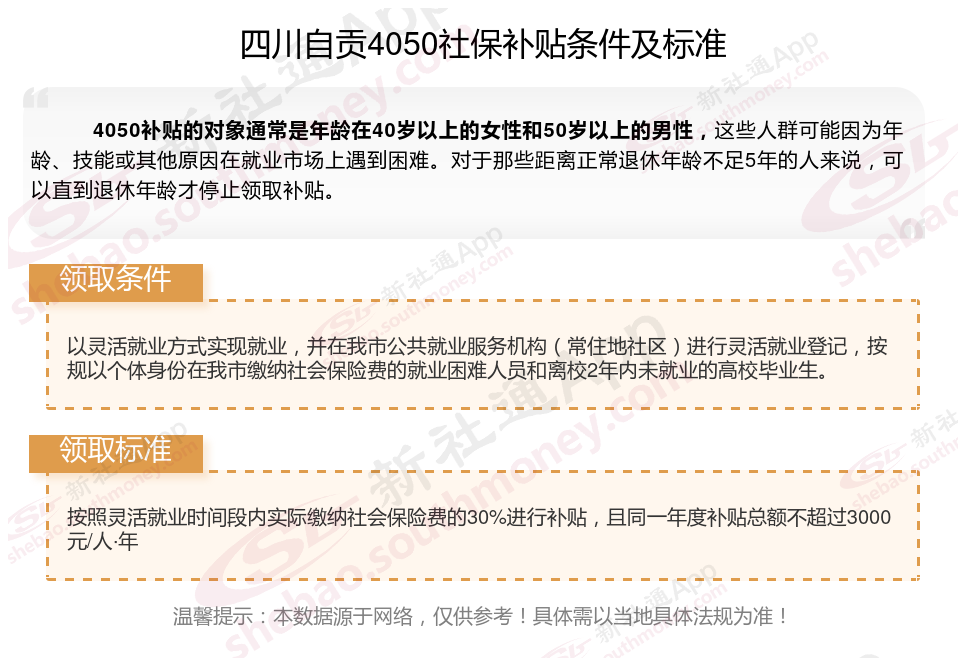 一、四川自贡4050社保补贴标准及条件2023-2024年