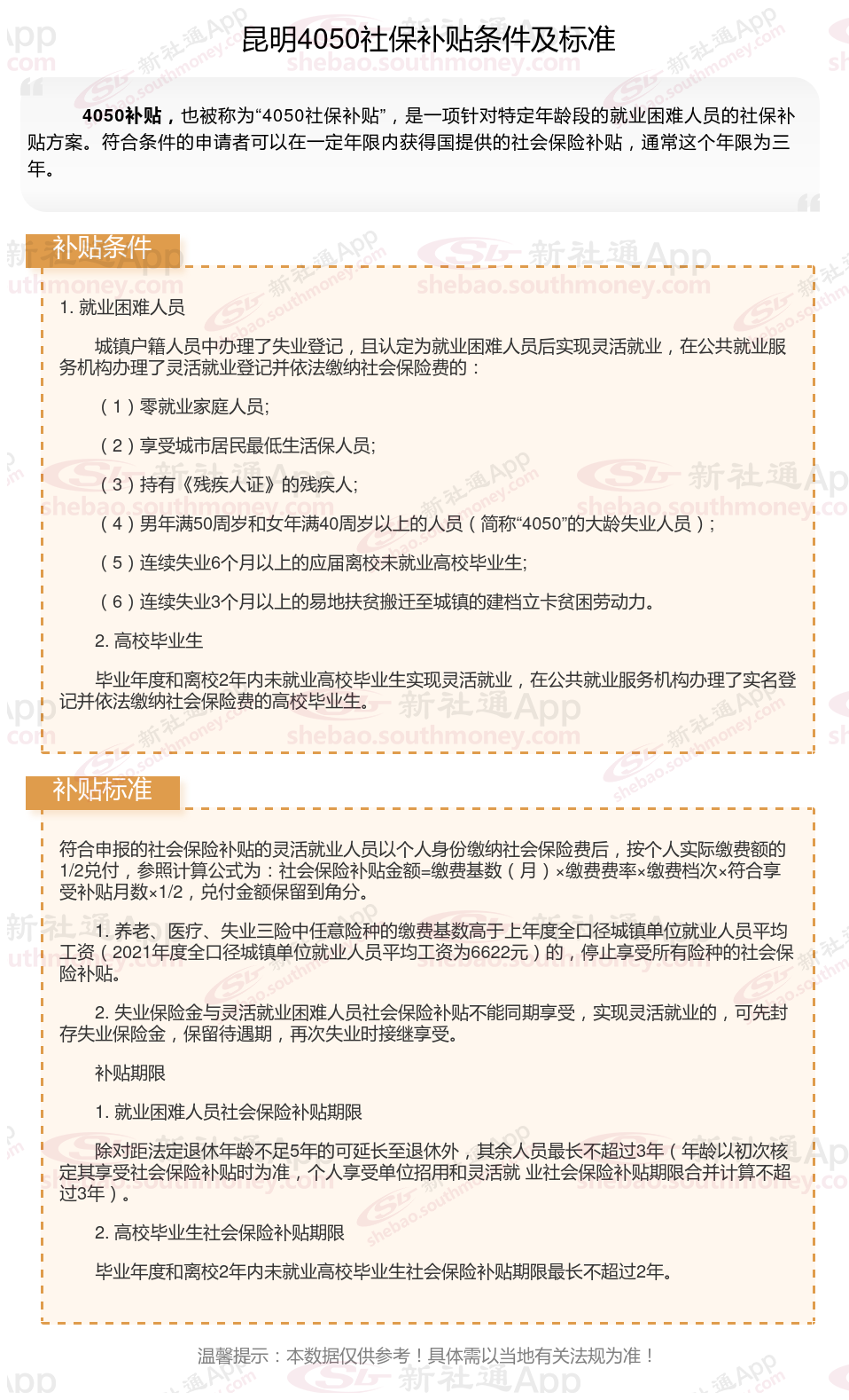 二、昆明4050社保补贴标准及条件2023-2024年